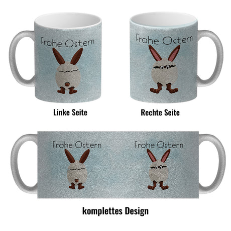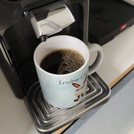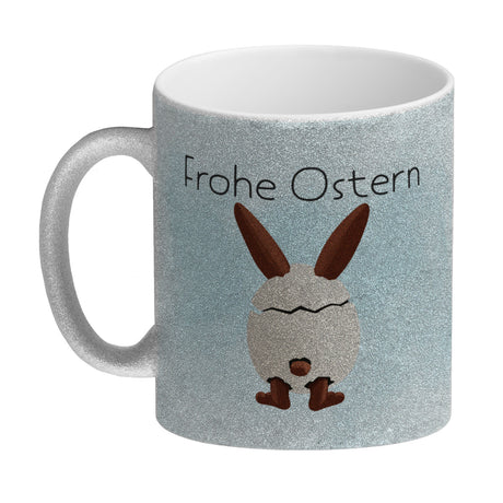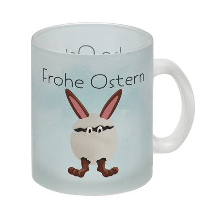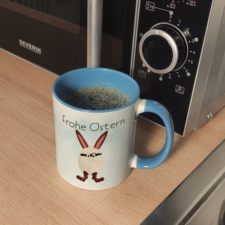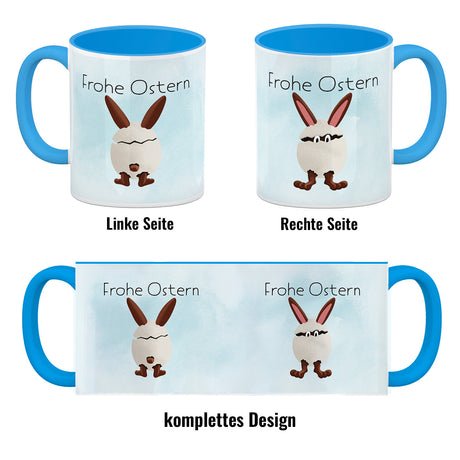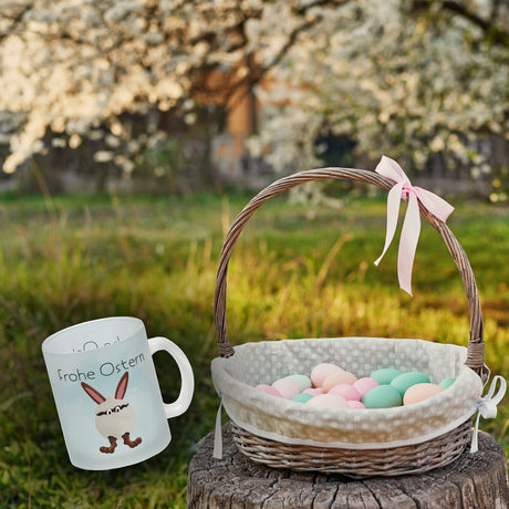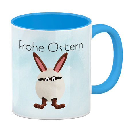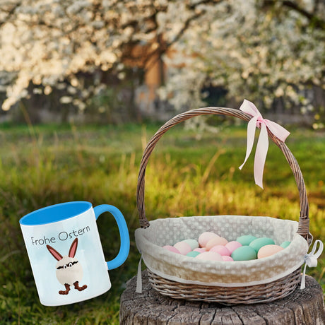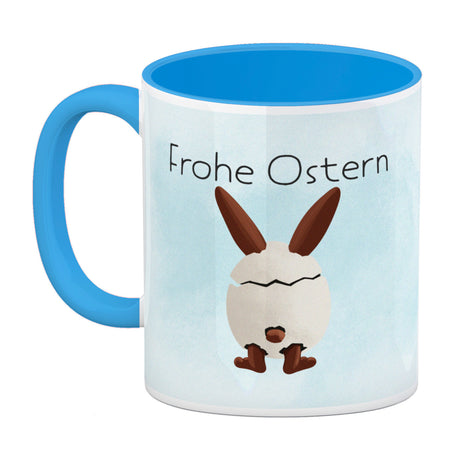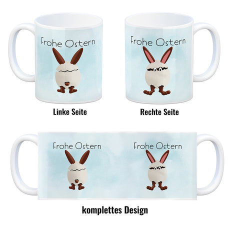 Frohe Ostern Kaffeebecher mit lustigem Osterhasen in Eierschale