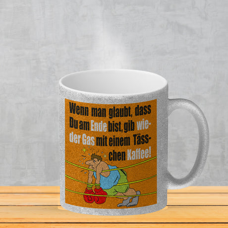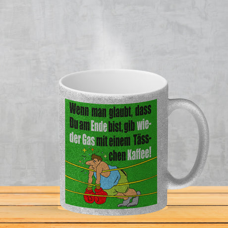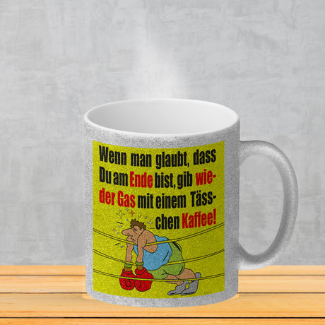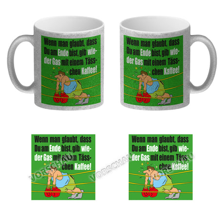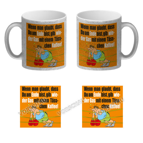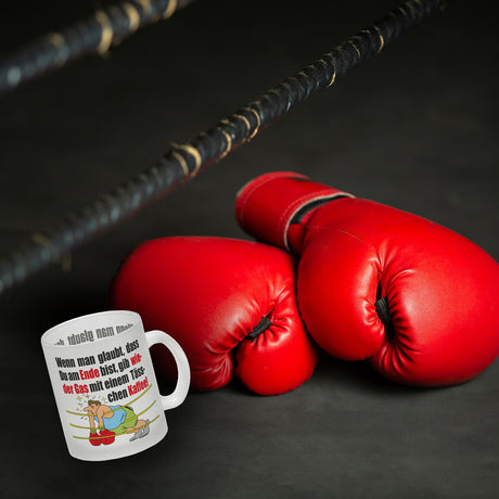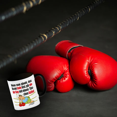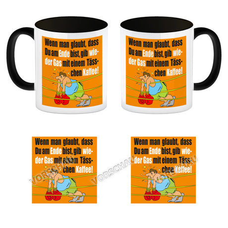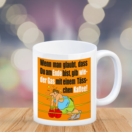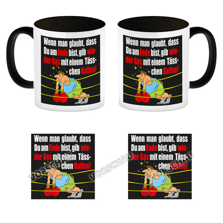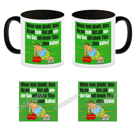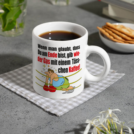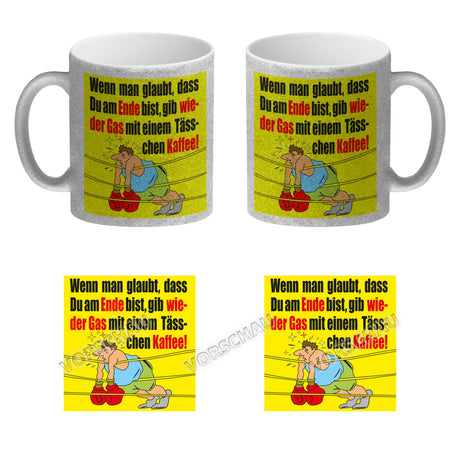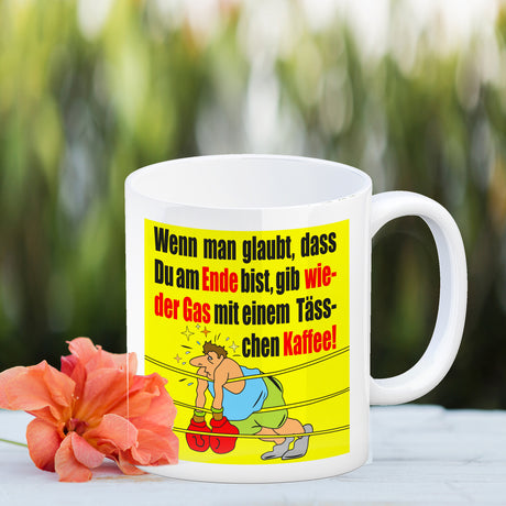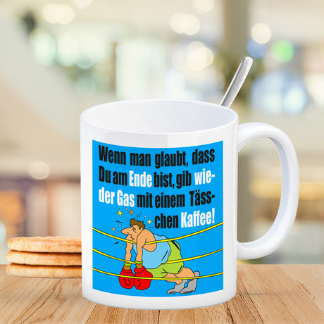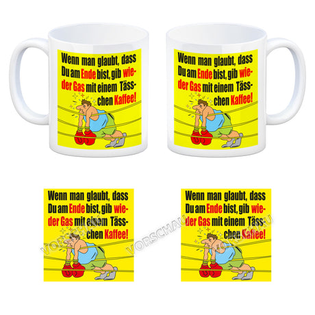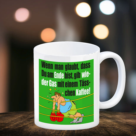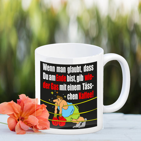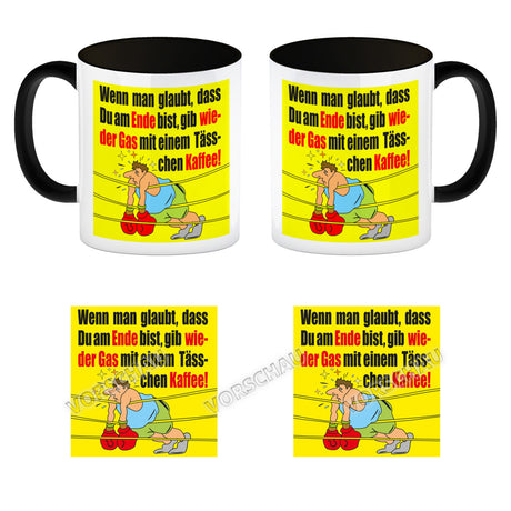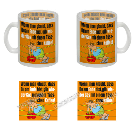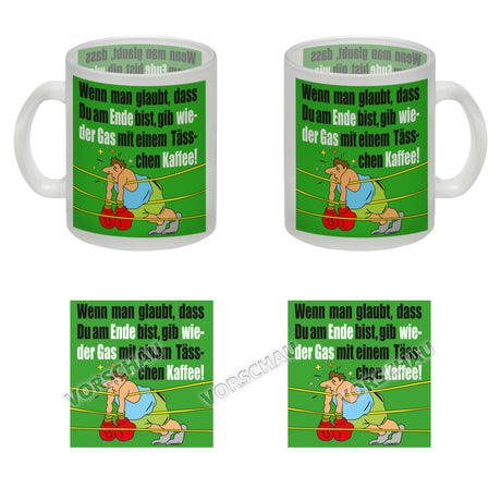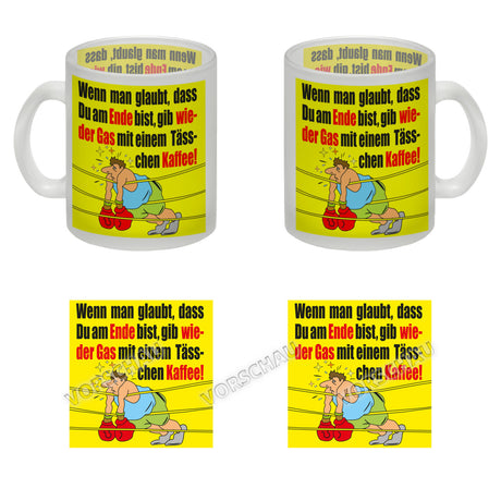 Vor'm Kaffee - nach'm Kaffee Kaffeebecher mit süßem Küken im Ei