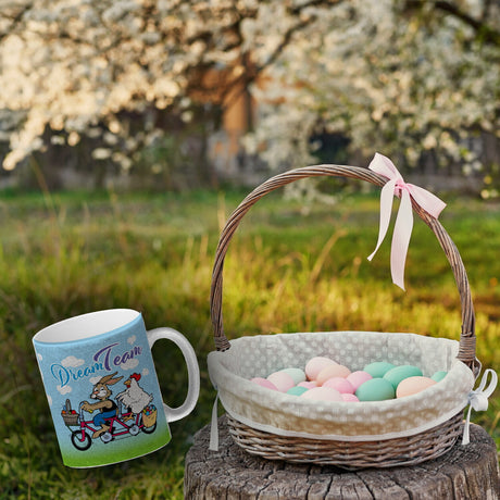 Ab €12,95Grundpreis /Nicht verfügbarAuf LagerOsterhase und Huhn auf Tandem Kaffeebecher Thema Ostern