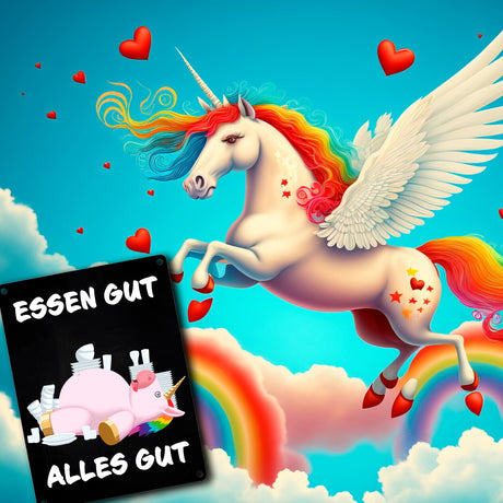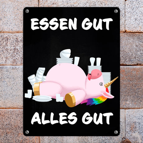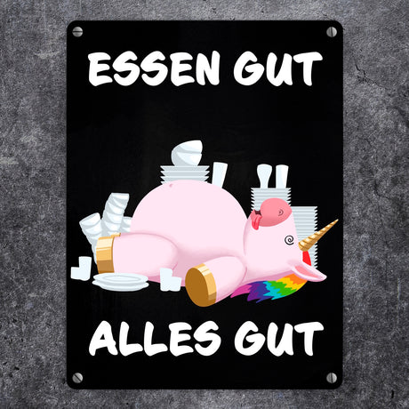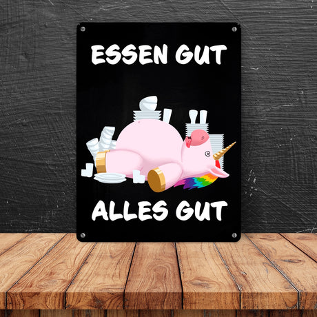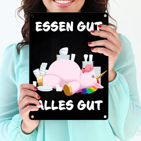 Ab €12,95Grundpreis /Nicht verfügbarAuf LagerEssen gut alles gut witziges Metallschild mit dickem Einhorn
