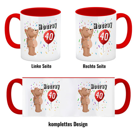 Witziger Kaffeebecher für den 40. Geburtstag mit Motiv: Hooray