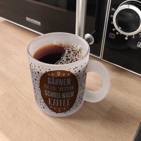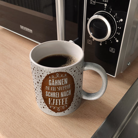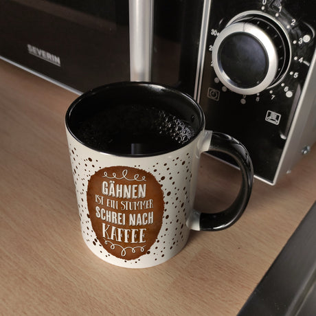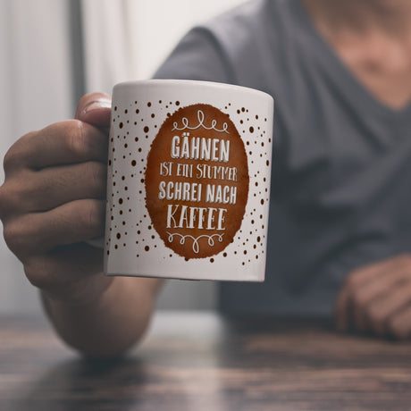 Ab €12,95Grundpreis /Nicht verfügbarAuf LagerKaffeebecher mit Spruch: Gähnen ist ein stummer Schrei nach Kaffee