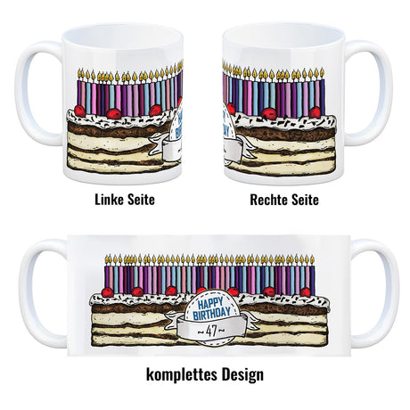 Geburtstagstorte Kaffeebecher zum 47. Geburtstag mit 47 Kerzen