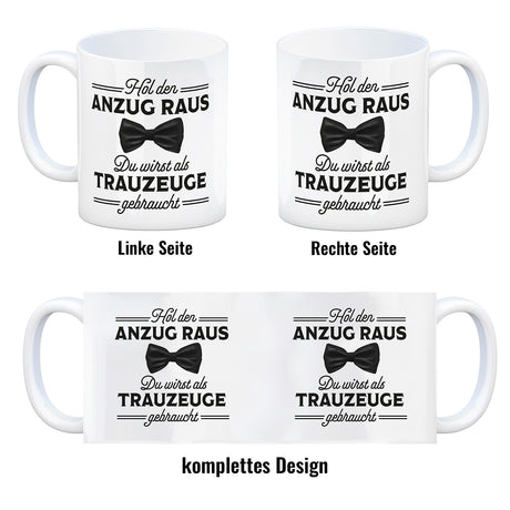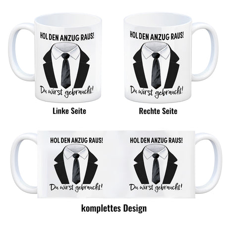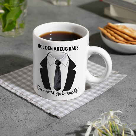 Ab €12,95Grundpreis /Nicht verfügbarAuf LagerTrauzeuge Kaffeebecher mit Spruch Hol den Anzug raus Du wirst gebraucht