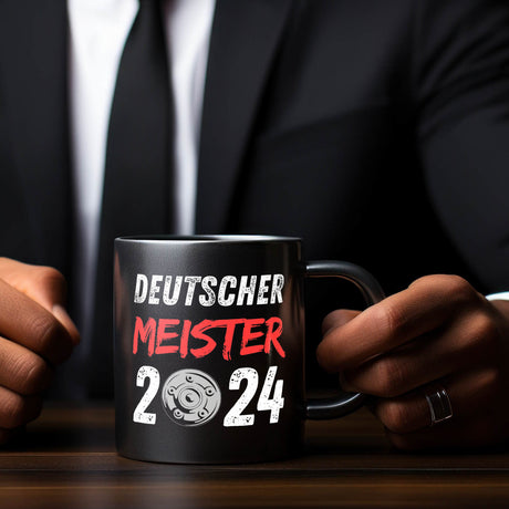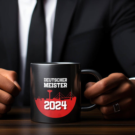 Ab €8,95Grundpreis /Nicht verfügbarAuf LagerLeverkusen Tasse in Schwarz mit Spruch Deutscher Meister 2024