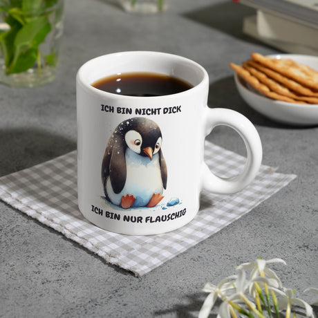 Ab €12,95Grundpreis /Nicht verfügbarAuf LagerFlauschiger Pinguin Kaffeebecher mit Spruch Nicht dick nur flauschig
