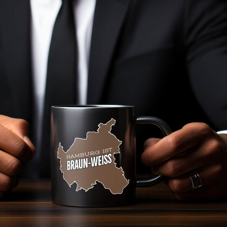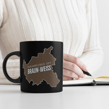 €13,95Grundpreis /Nicht verfügbarAuf LagerSt. Pauli Tasse in Schwarz mit Spruch Hamburg ist braun-weiss