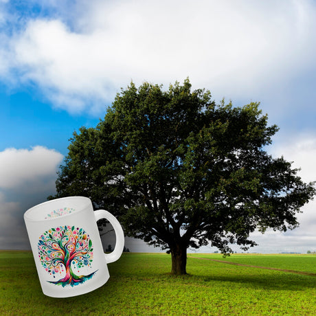 Frosch auf Seerose Kaffeebecher mit Spruch Kein Stress einfach leben und genießen
