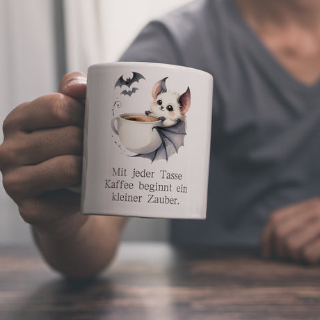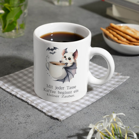 Ab €12,95Grundpreis /Nicht verfügbarAuf Lagerniedliche Fledermaus mit Kaffeetasse Kaffeebecher mit Spruch Jede Tasse Kaffee birgt Zauber