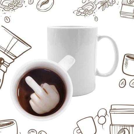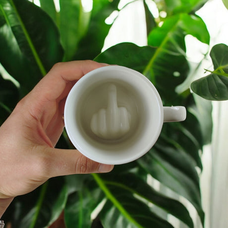 Mittelfinger Tasse - lustiger Kaffeebecher fürs Büro mit Stinkefinger im Inneren