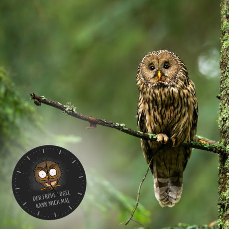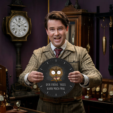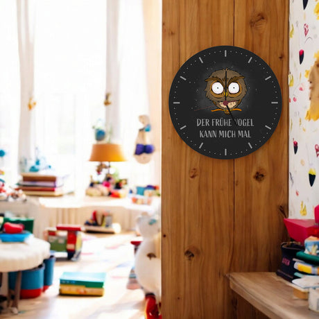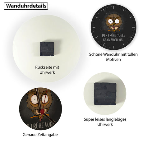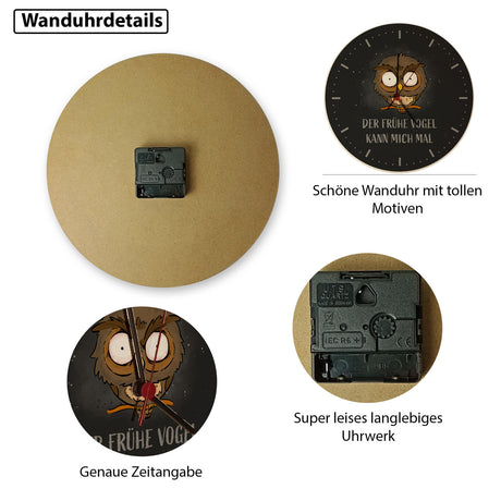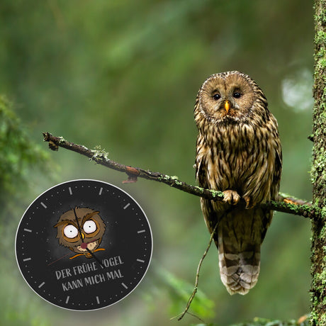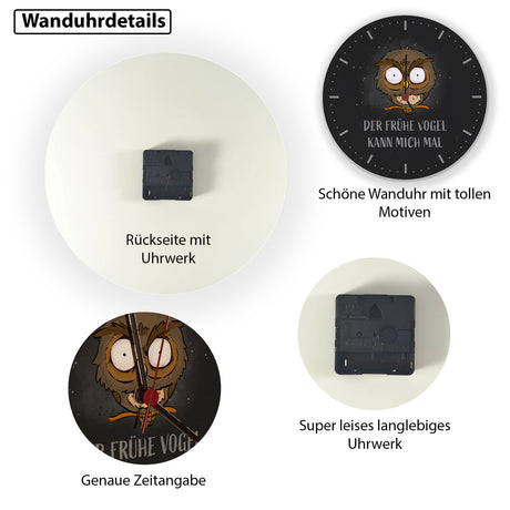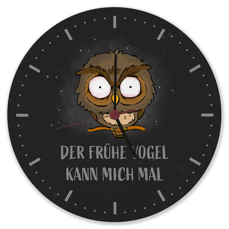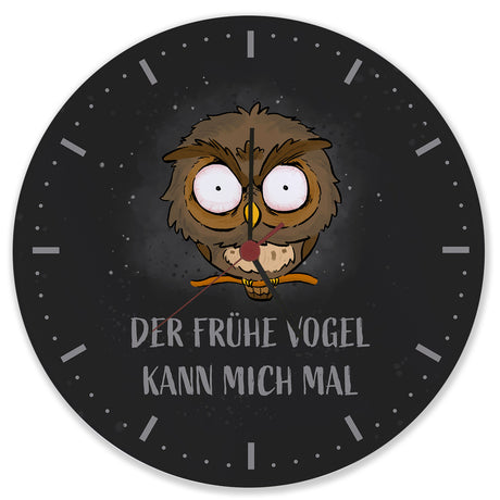 €26,45Grundpreis /Nicht verfügbarAuf LagerEule Wanduhr mit Spruch Der frühe Vogel kann mich mal