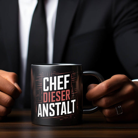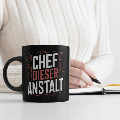 Chef dieser Anstalt - Schwarzer Kaffeebecher
