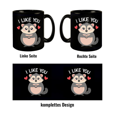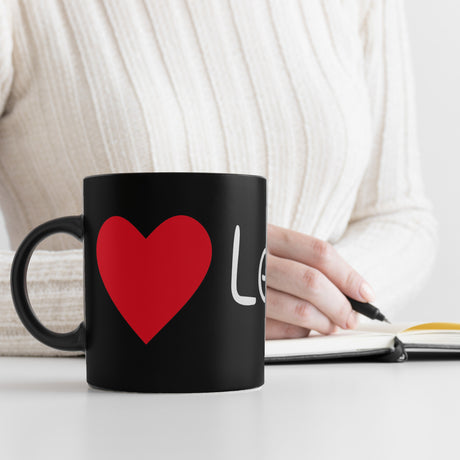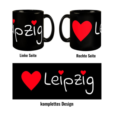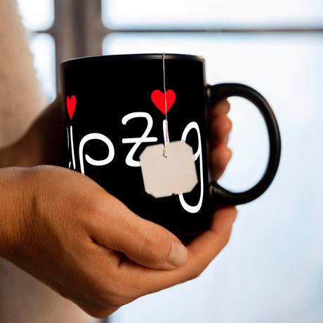 Schwarze Tasse Leipzig mit rotem Herz - Romantische KaffeeTasse