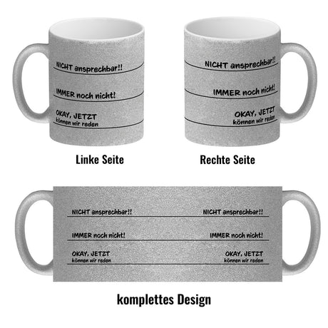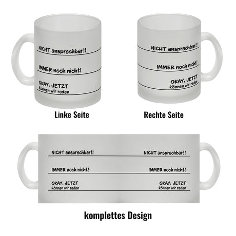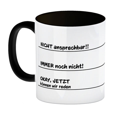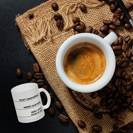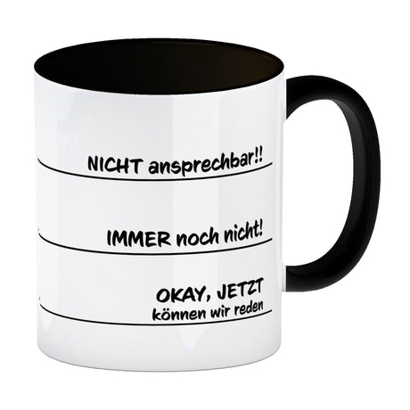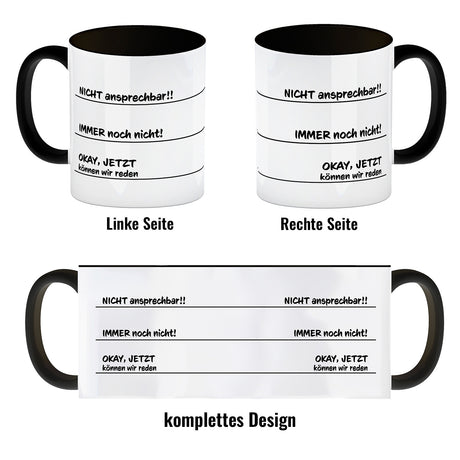 Ohne Kaffee nicht ansprechbar Kaffeebecher mit verschiedenen Gemütslagen