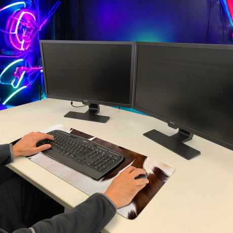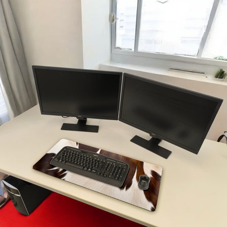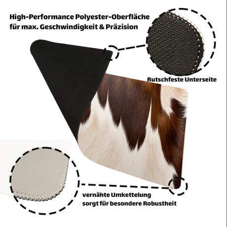 Ab €14,95Grundpreis /Nicht verfügbarAuf LagerKuhfell-Design Schreibtischunterlage 69x31cm XXL Mauspad - Stilvolle und Funktionale Tischunterlage
