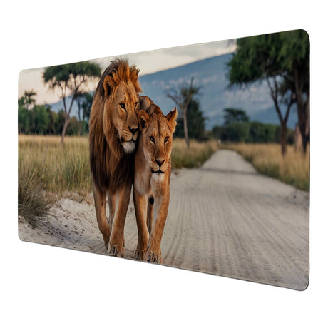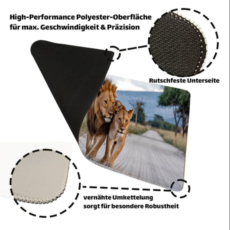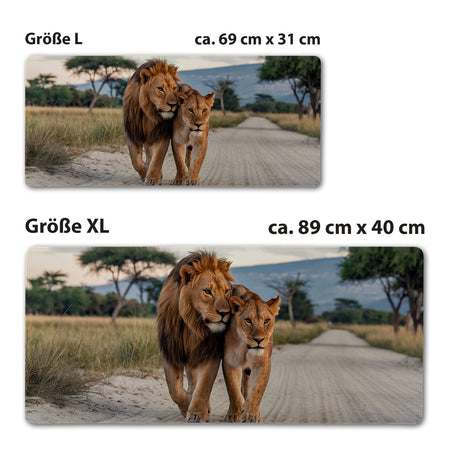 Löwenpaar Schreibtischunterlage 69x31cm XXL Mauspad mit Afrika Tiermotiv