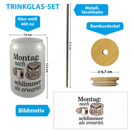 Ab €7,90Grundpreis /Nicht verfügbarAuf LagerMontag ist schlimmer als gedacht Trinkglas mit Bambusdeckel