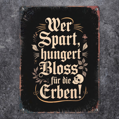 Ab €7,90Grundpreis /Nicht verfügbarAuf LagerWer spart, hungert bloss für die Erben Metallschild in 15x20 cm
