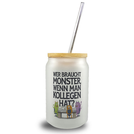 €3,95Grundpreis /Nicht verfügbarAuf LagerKeine Monster, aber Kollegen Trinkglas mit Bambusdeckel Monster als Kollege