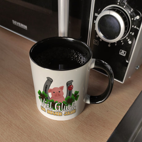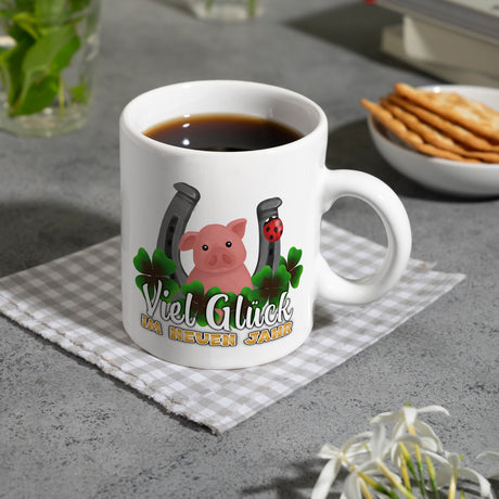 Viel Glück im neuen Jahr Kaffeebecher mit Glücksbringern