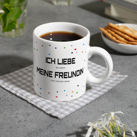 Ab €12,95Grundpreis /Nicht verfügbarAuf LagerIch liebe es, wenn meine Freundin mich zocken lässt Kaffeebecher mit Pixelherz