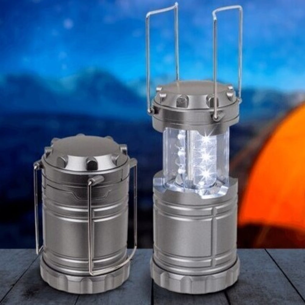 Pop-Up Campingleuchte in silber mit Tragegriffen ist auf Lager und wird versandt, sobald es wieder verfügbar ist