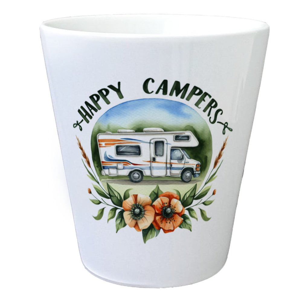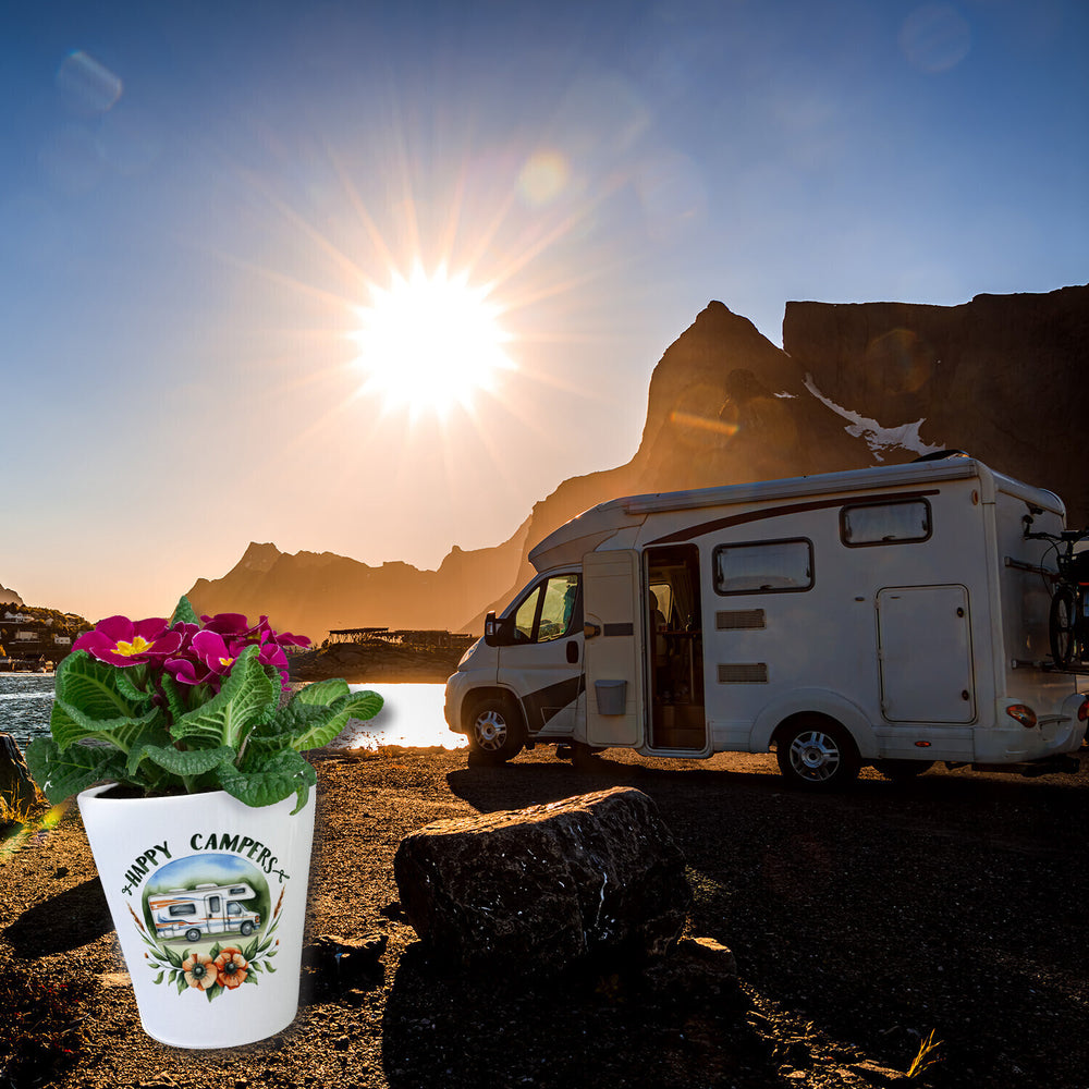 • Unser Wohnmobil Happy Campers Blumentopf ist der perfekte Begleiter für alle, die ihre Liebe zum Camping und zur Natur ausdrücken möchten. Mit einem fröhlichen Wohnmobil und dem Spruch "Happy Campers" bringt dieser Blumentopf Spaß und Freude in jeden Raum.