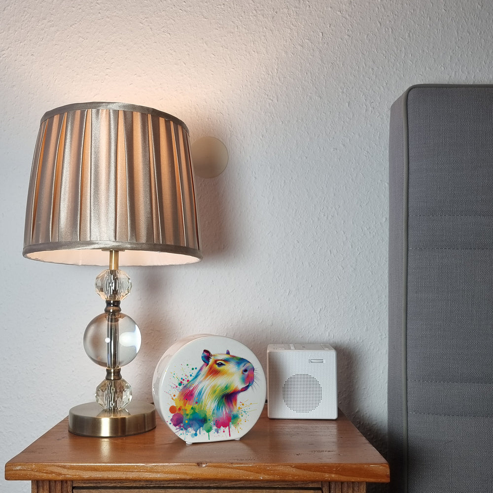 - Die bunte Capybara Spardose ist nicht nur ein Schatzbehälter, sondern auch ein Statement: "Ich bin farbenfroh und sparsam!" Lass dich von diesem süßen Säugetier mit Spritzern dazu inspirieren, für deine bunten Träume zu sparen.