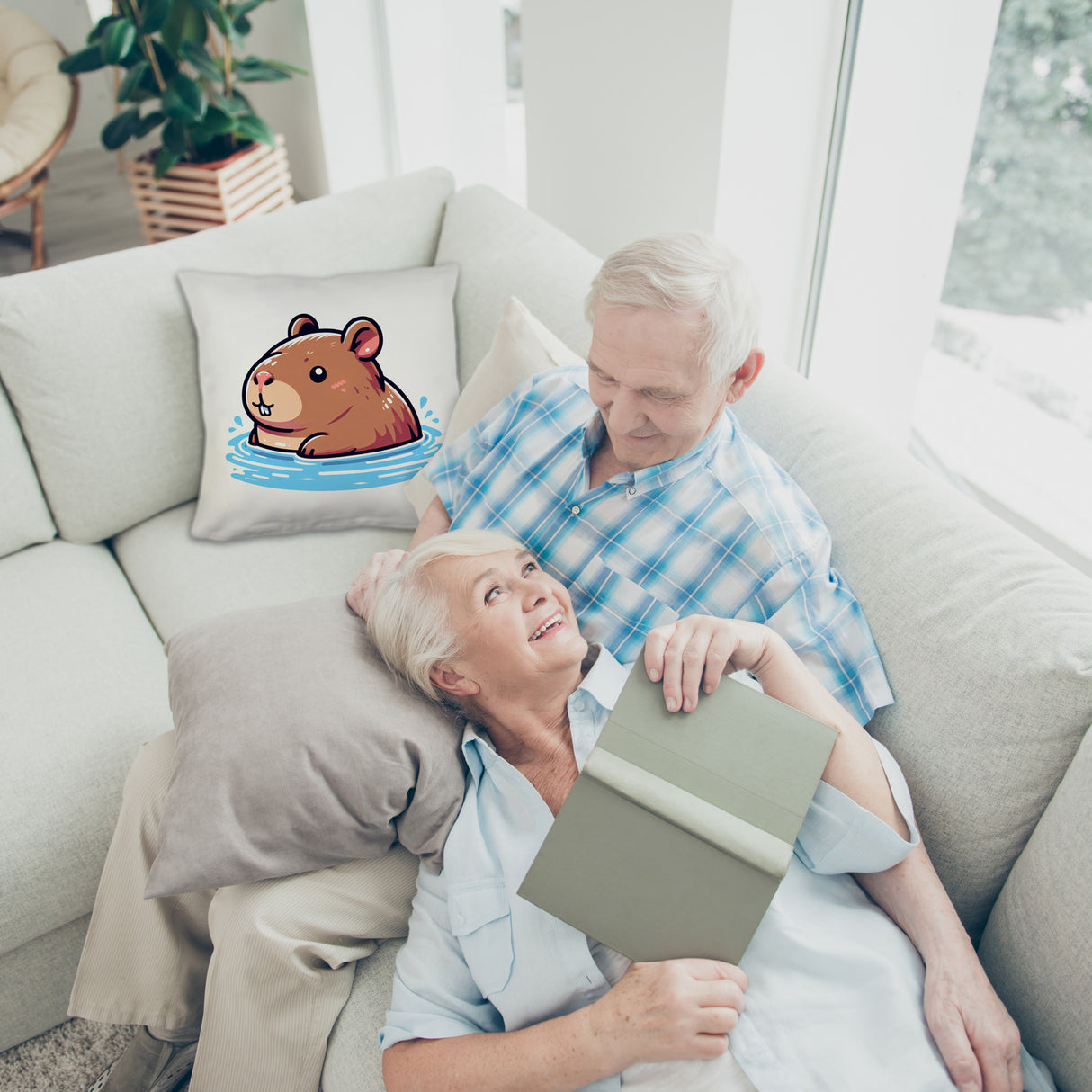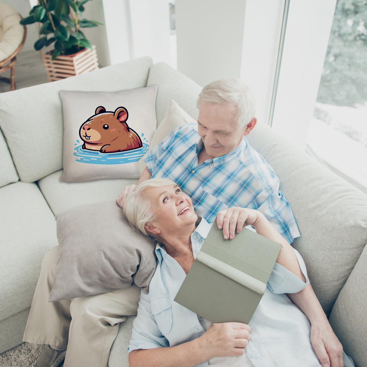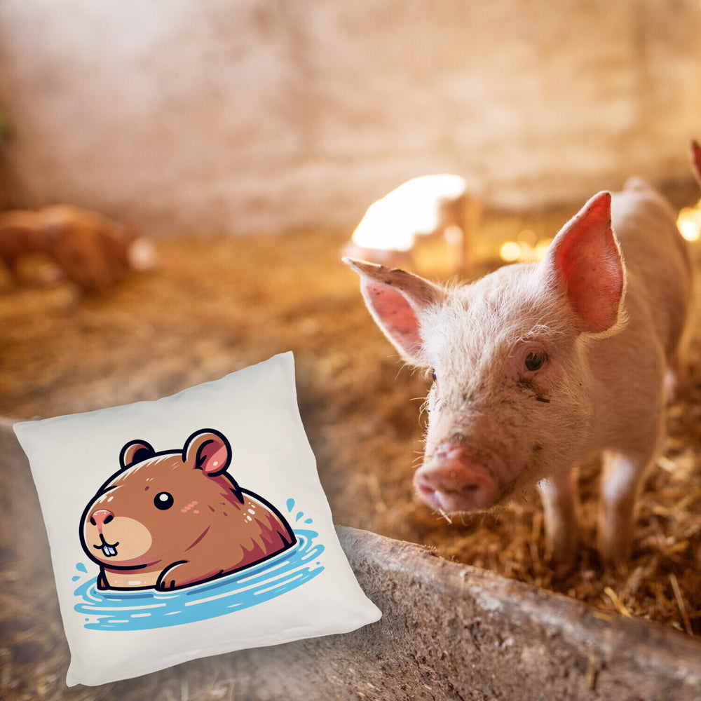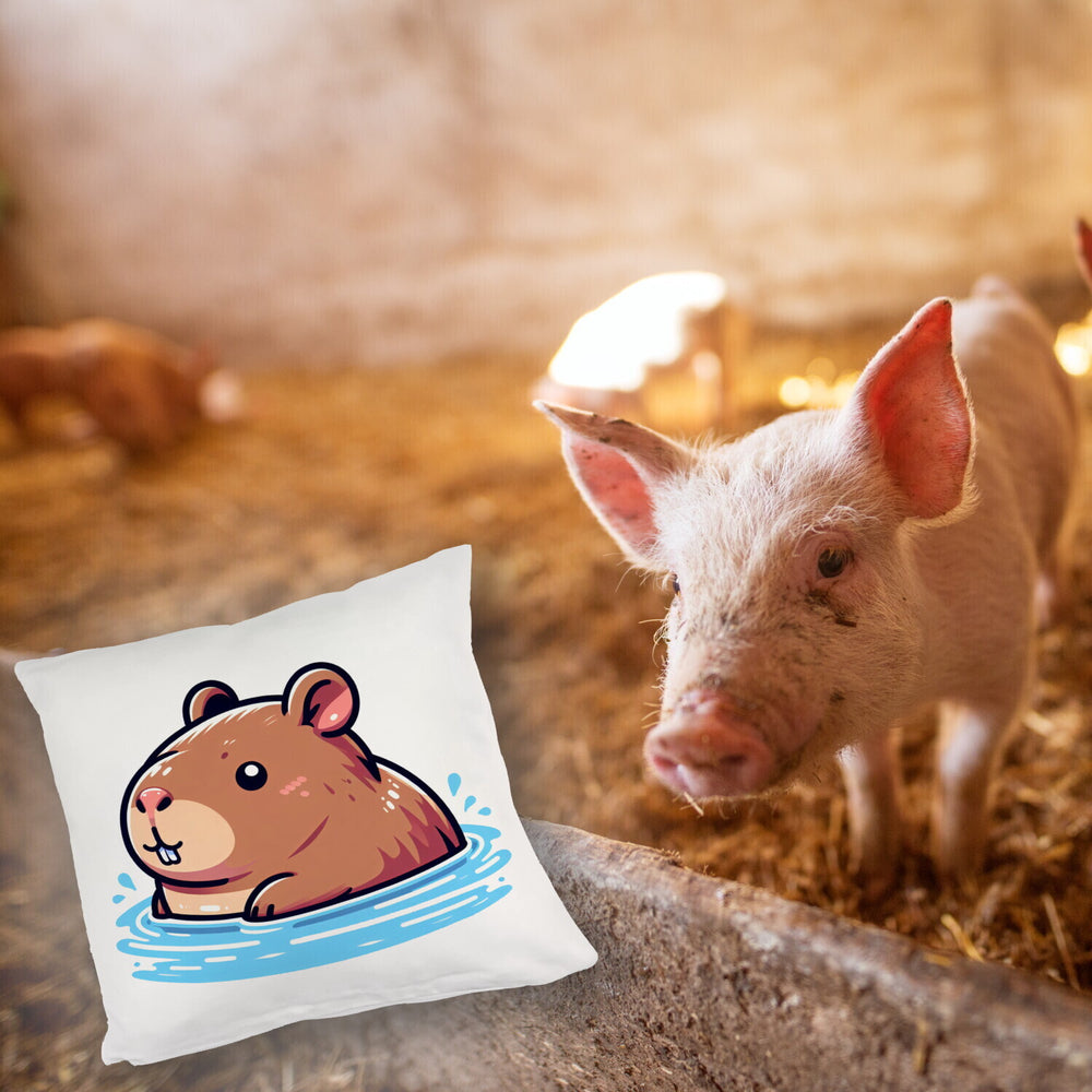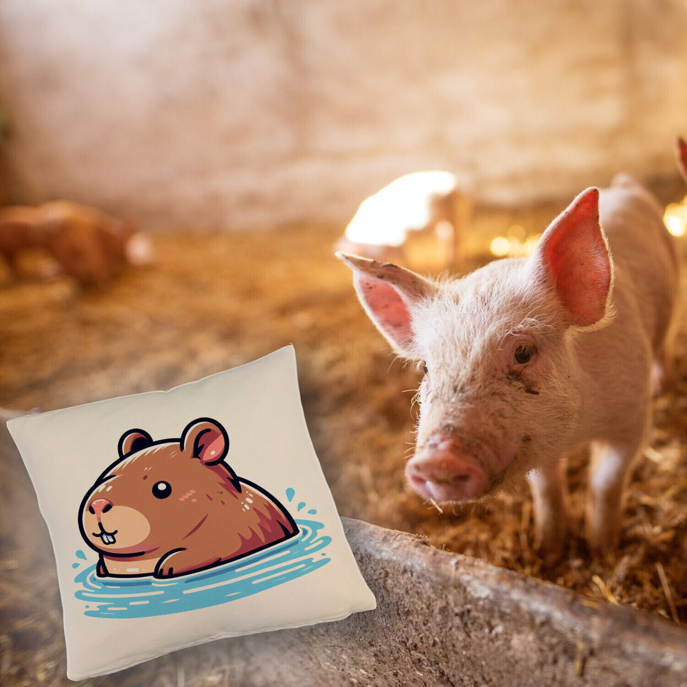 • Platz da für das niedlichste Schwergewicht in deiner Kuschelzone! Unser Capybara Comic Kissen zeigt ein plüschartiges, rundes Wasserschwein – Meister im gemütlichen Dahintreiben. Mollig und süß, planscht das liebenswerte Tierchen im klaren Seegewässer, als gäbe es kein Morgen!