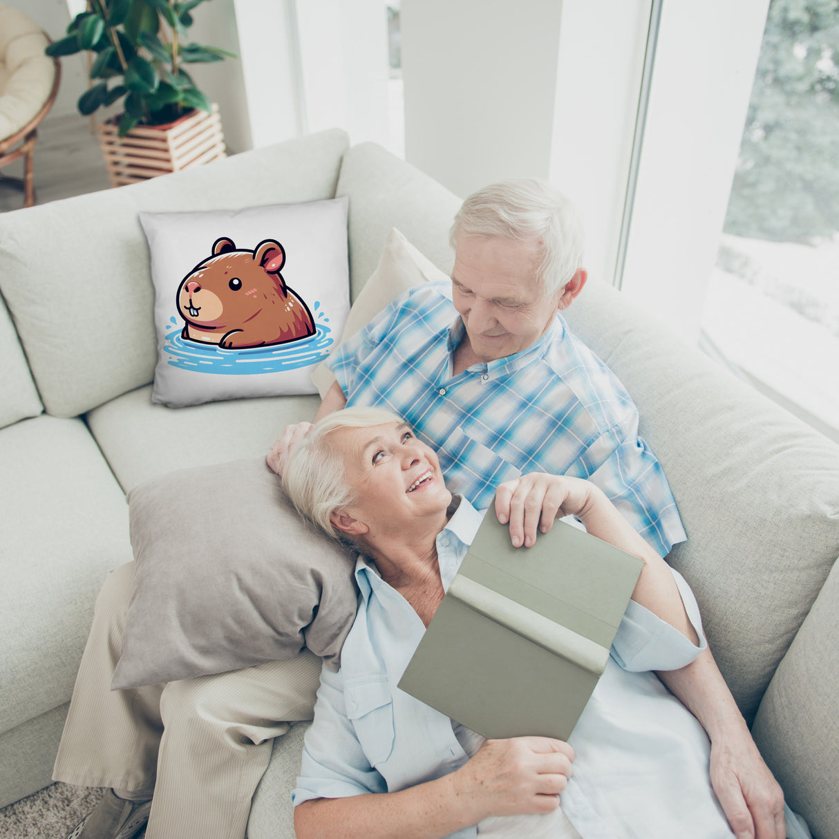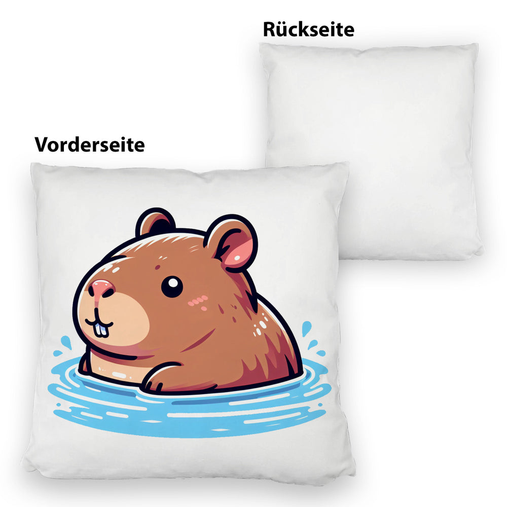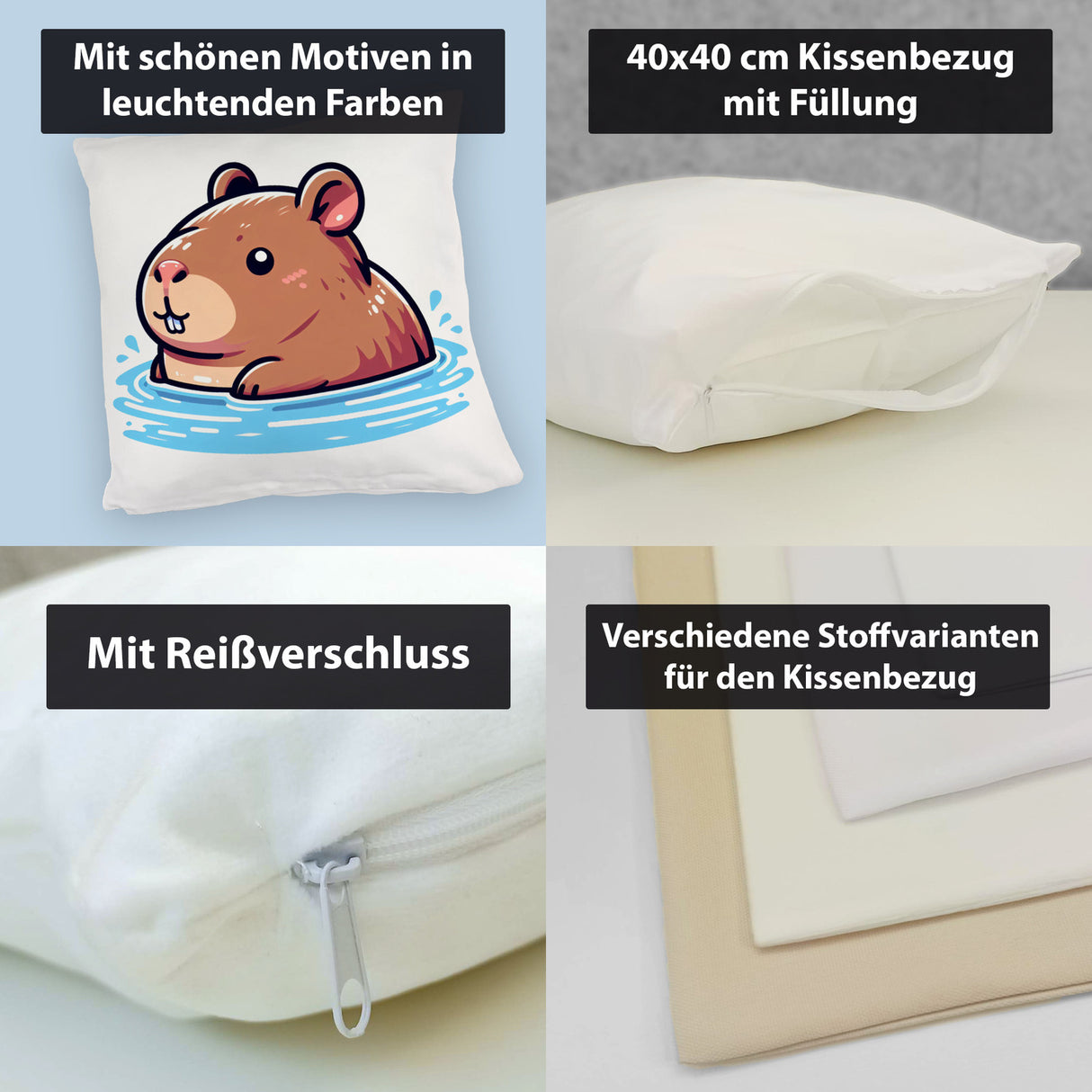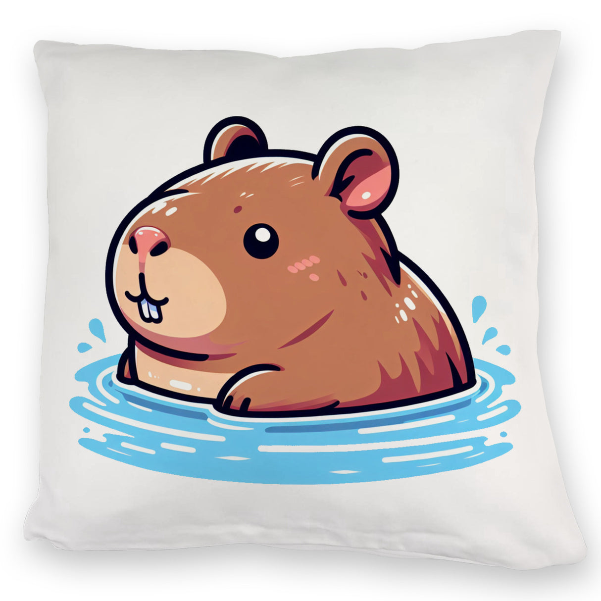 • Platz da für das niedlichste Schwergewicht in deiner Kuschelzone! Unser Capybara Comic Kissen zeigt ein plüschartiges, rundes Wasserschwein – Meister im gemütlichen Dahintreiben. Mollig und süß, planscht das liebenswerte Tierchen im klaren Seegewässer, als gäbe es kein Morgen!