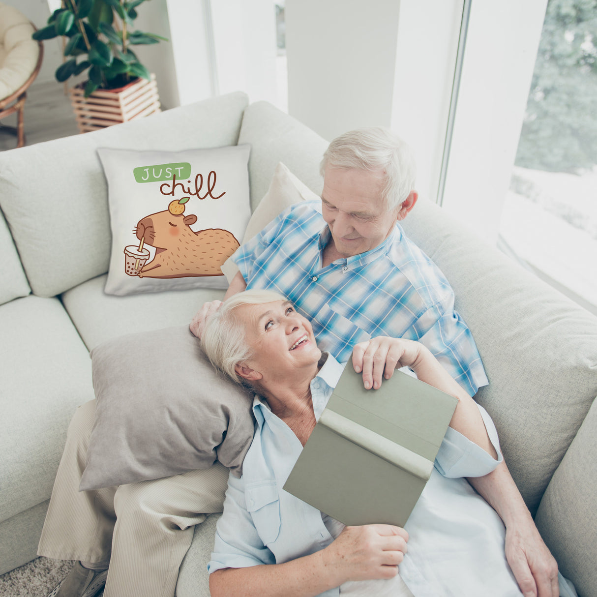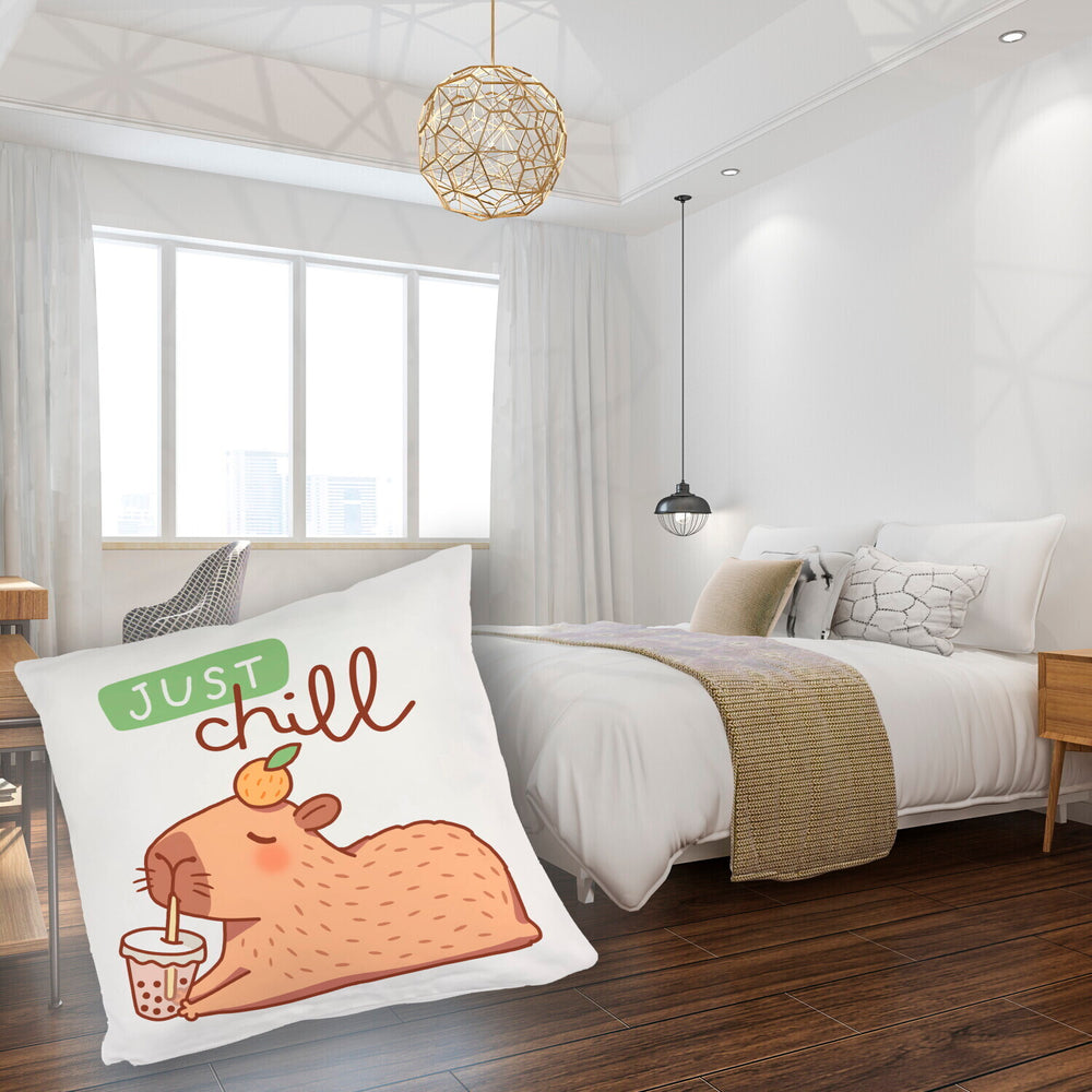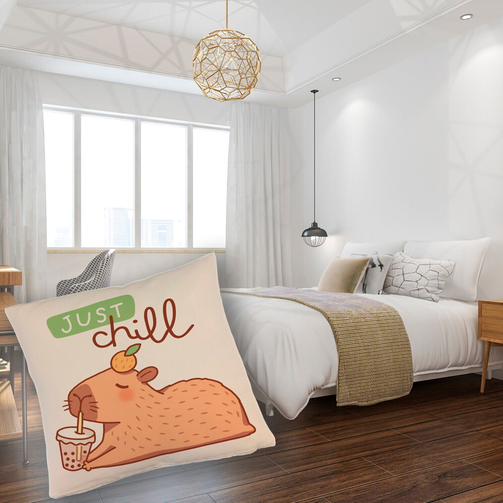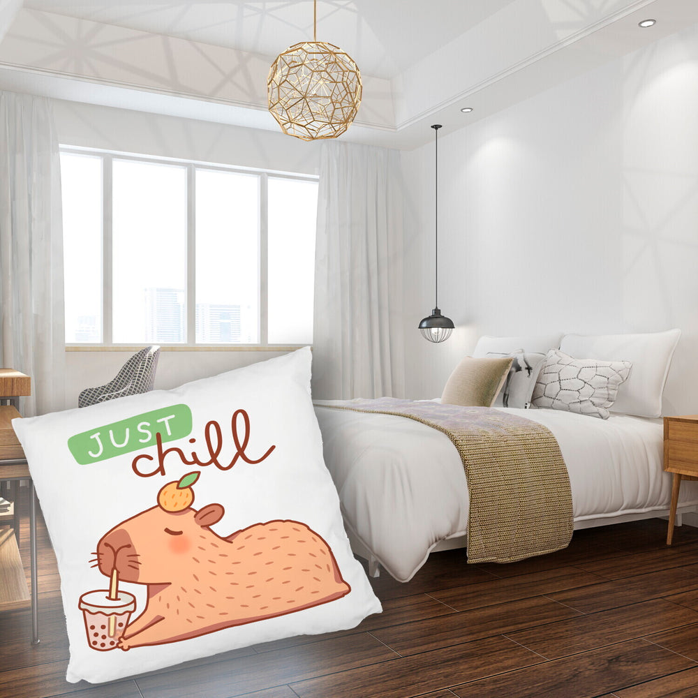 - Schlummert gemütlich wie das Capybara im Dschungel! Unser "Capybara mit Bubble Tea Kissen" bringt euch mit dem Spruch "Just Chill" in tropische Träume. Perfekt fürs Bett, als süßer Schmuck am Nachttisch - dieses Kissen ist der Knaller für Teenager und alle, die's kawaii und flauschig lieben!