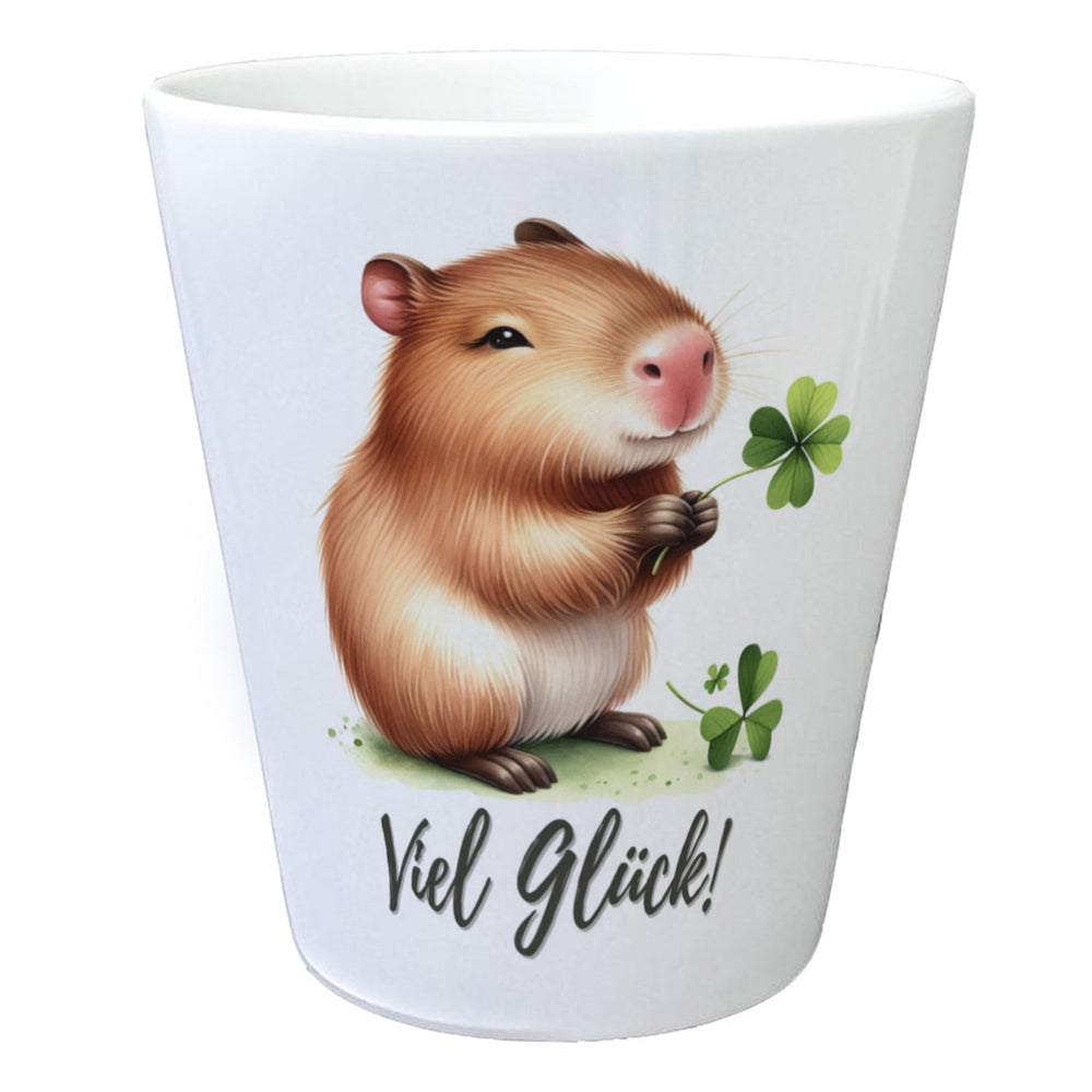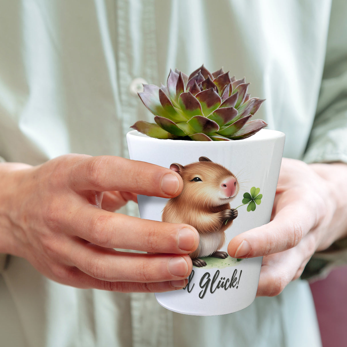 - Warum für Glück nur Daumen drücken, wenn Du auch ein Capybara mit Kleeblatt haben kannst? Der Spruch "Viel Glück!" macht diesen Blumentopf zum idealen Geschenk. Hol dir Dein Stück Glück nach Hause!