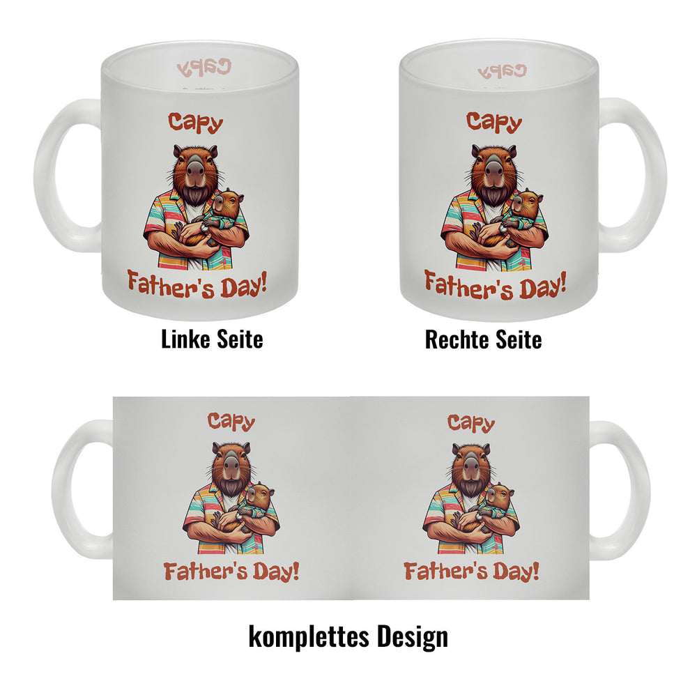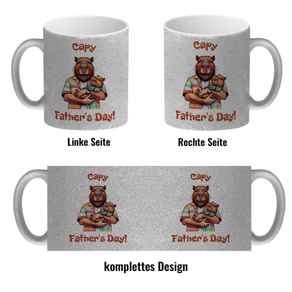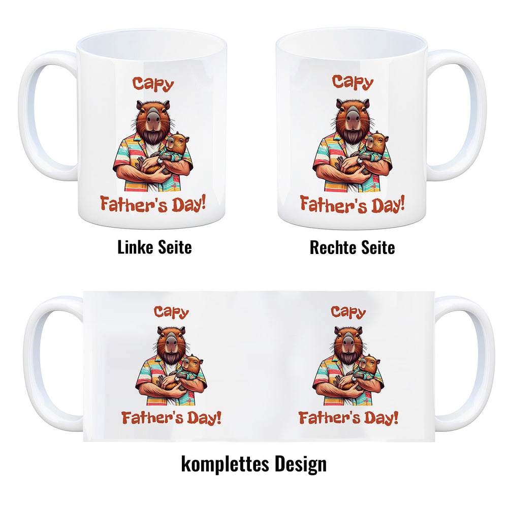 - 1x Capybara-Papa mit Kind Kaffeebecher mit Spruch Capy Father's Day in der gewählten Ausführung