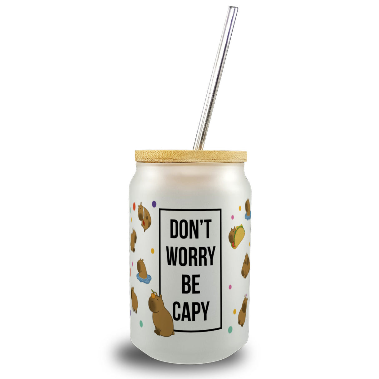 Dont worry be capy Capybara Trinkglas mit Bambusdeckel