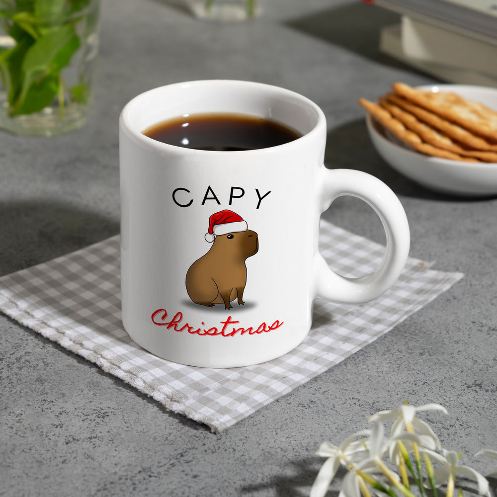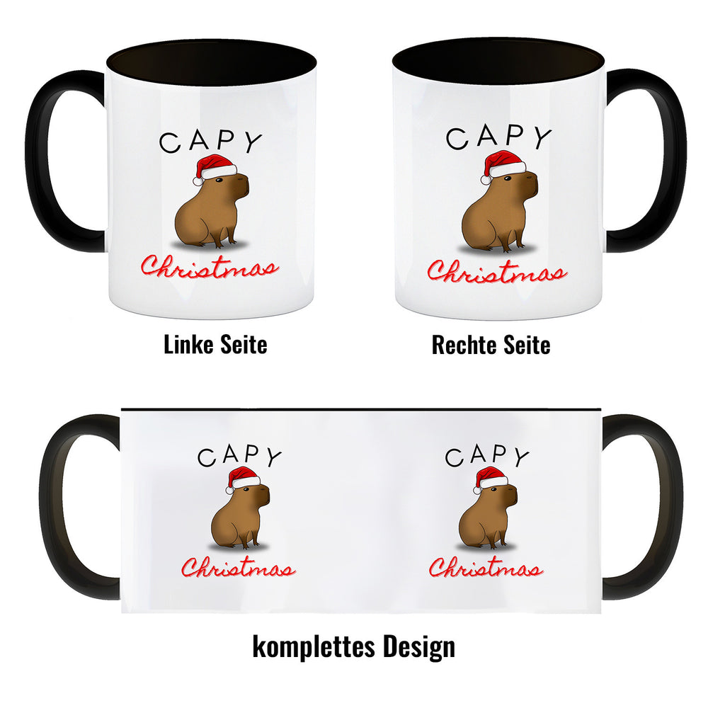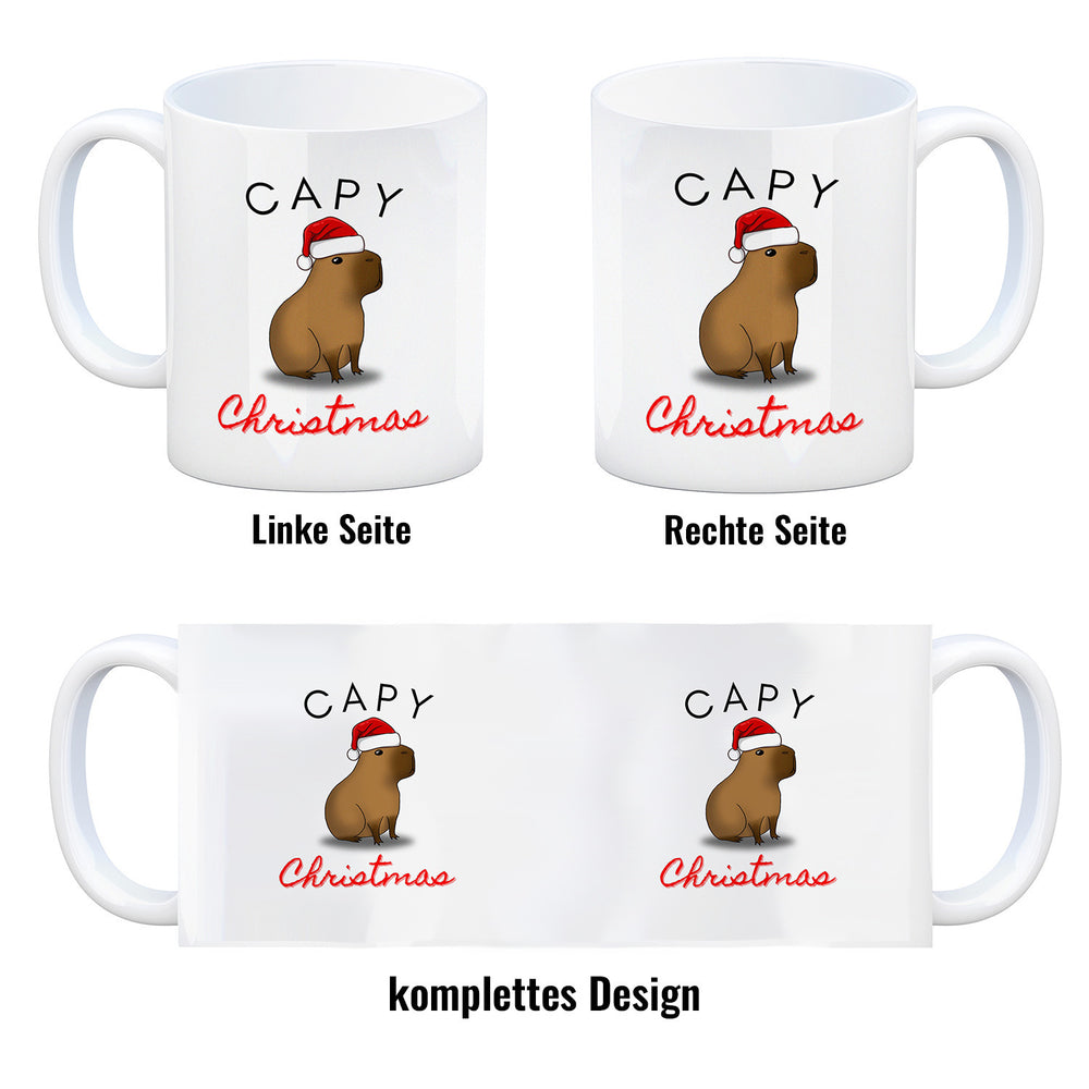 • 1x Weihnachts-Capybara Kaffeebecher mit Spruch Capy Christmas in der gewählten Ausführung