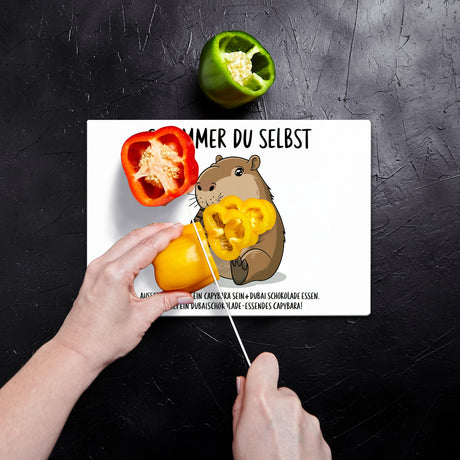 €11,90Grundpreis /Nicht verfügbarAuf LagerCapybara frisst Dubai-Schokolade Schneidebrett aus Glas - Sei immer du selbst