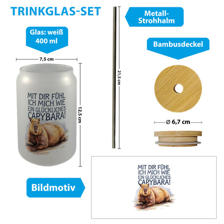 €8,95Grundpreis /Nicht verfügbarAuf LagerGlücklich mit dir fröhliches Capybara Trinkglas mit Bambusdeckel