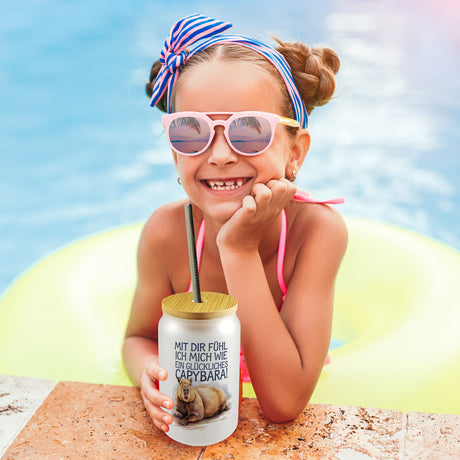 Ab €14,95Grundpreis /Nicht verfügbarAuf LagerCapybara im Wasser Trinkglas mit Bambusdeckel - bringst mein Herz zum Platschen
