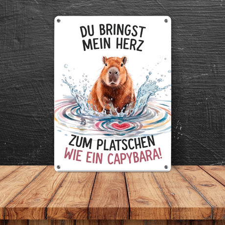Ab €8,95Grundpreis /Nicht verfügbarAuf LagerBringst mein Herz zum Platschen Metallschild in 15x20 cm mit Capybara