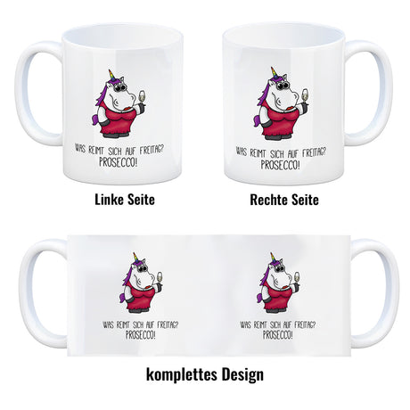 Ab €12,95Grundpreis /Nicht verfügbarAuf LagerKaffeebecher mit Spruch: Was reimt sich auf Freitag? Prosecco! ...