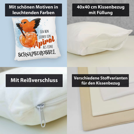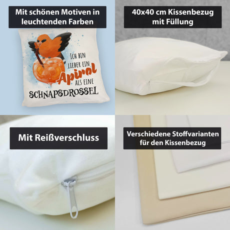 Ab €12,95Grundpreis /Nicht verfügbarAuf LagerCocktail Vogel Pirol Kissen mit Spruch Lieber Apirol als Schnapsdrossel