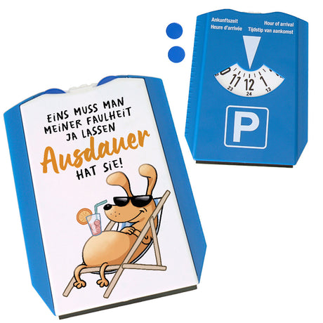 Ab €16,95Grundpreis /Nicht verfügbarAuf LagerFauler Hund Parkscheibe mit Spruch Meine Faulheit hat Ausdauer