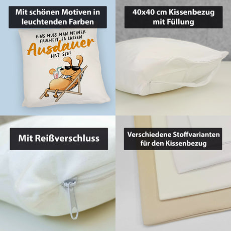 Ab €8,95Grundpreis /Nicht verfügbarAuf LagerFauler Hund Kissen mit Spruch Meine Faulheit hat Ausdauer