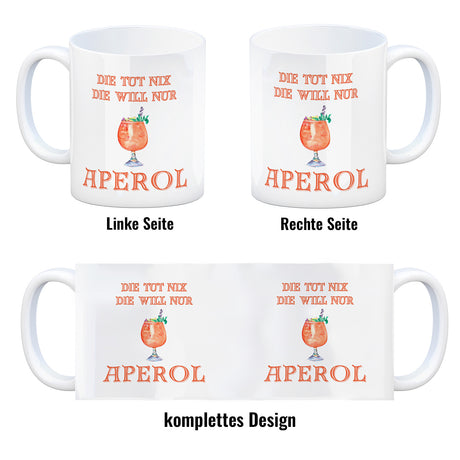 Ab €8,95Grundpreis /Nicht verfügbarAuf LagerAperol Kaffeebecher mit Spruch Die tut nix die will nur Aperol