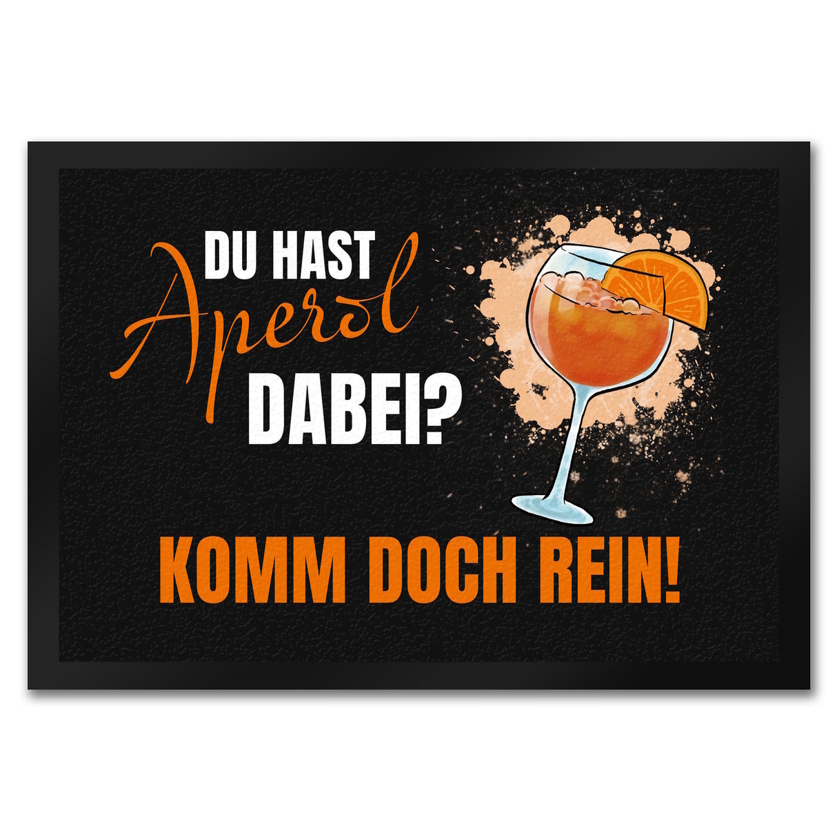 - Unsere Fußmatte ist der absolute Hingucker! Mit einem stilvollen Aperol-Motiv auf schwarzem Hintergrund bringt sie nicht nur Farbe in deinen Eingangsbereich, sondern hält auch Schmutz fern. Eine Fußmatte ist unerlässlich, um deine Wohnung sauber zu halten und Gäste herzlich willkommen zu heißen.