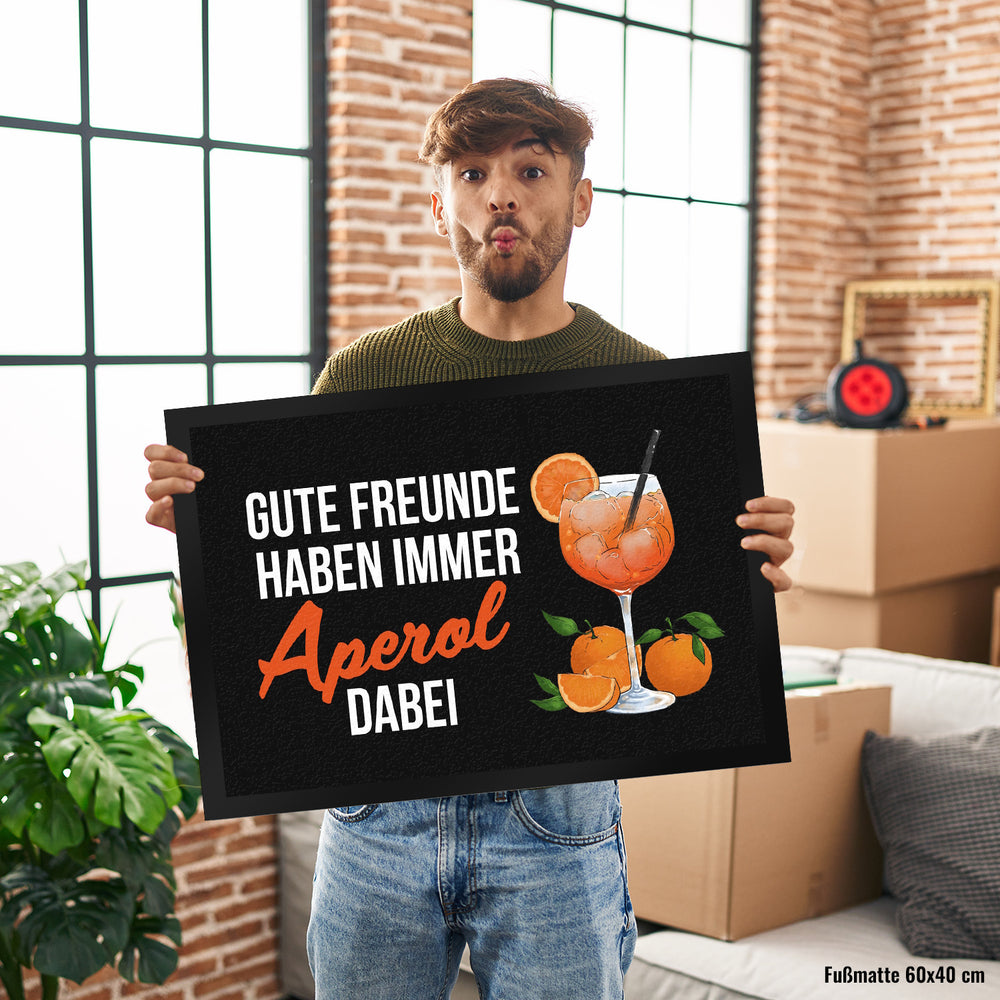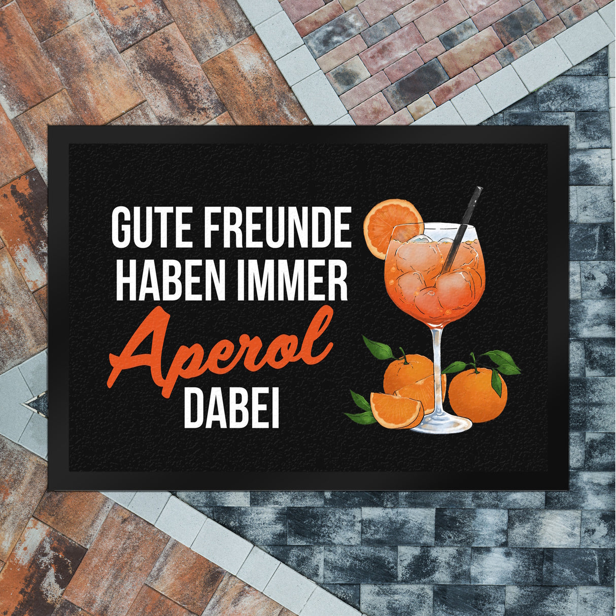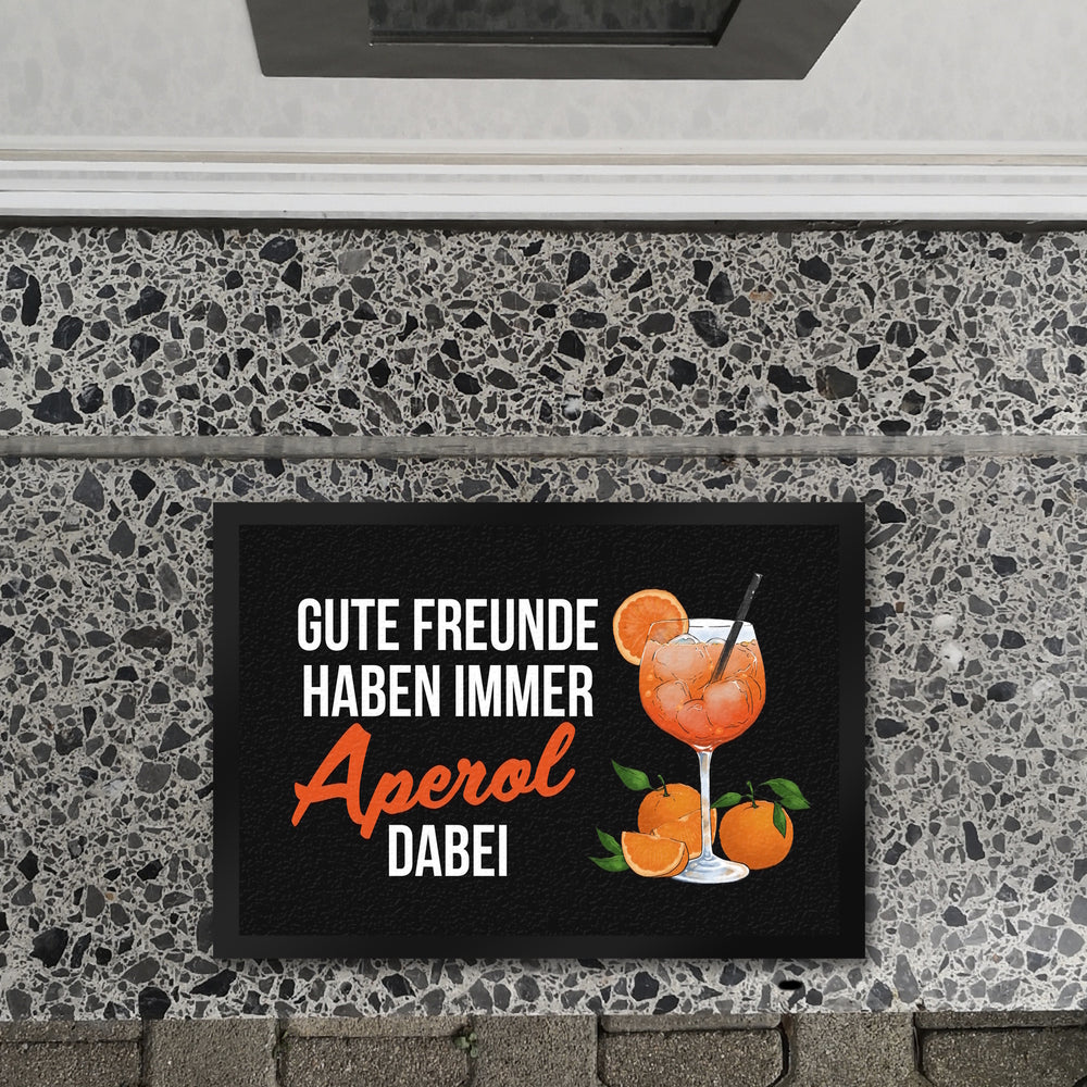 - Tritt ein und lache! Die "Gute Freunde haben immer Aperol dabei" Fußmatte begrüßt deine Gäste mit einem fröhlichen Zwinkern und einem erfrischenden Aperol Spritz Motiv. Ein Eyecatcher in Schwarz, der Schmutz und Langeweile vor der Tür lässt!