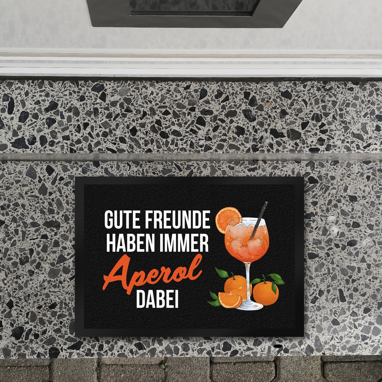 Cocktail Fußmatte in 35x50 cm mit Spruch Gute Freunde haben immer Aperol dabei