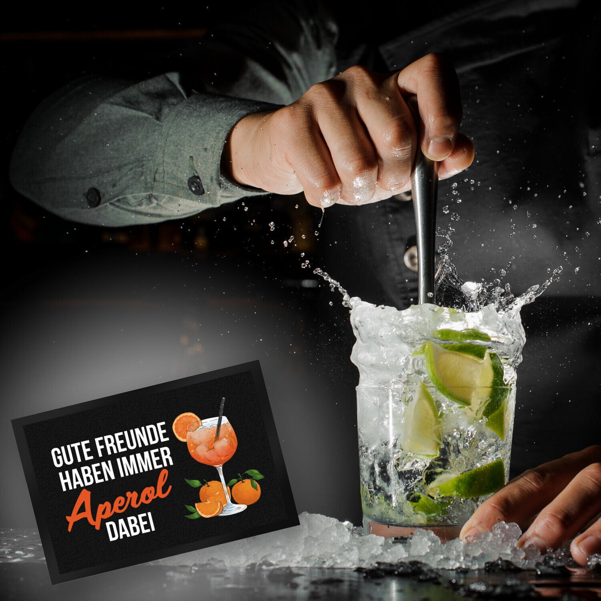 - 1x Cocktail Fußmatte in 35x50 cm mit Spruch Gute Freunde haben immer Aperol dabei in der gewählten Größe