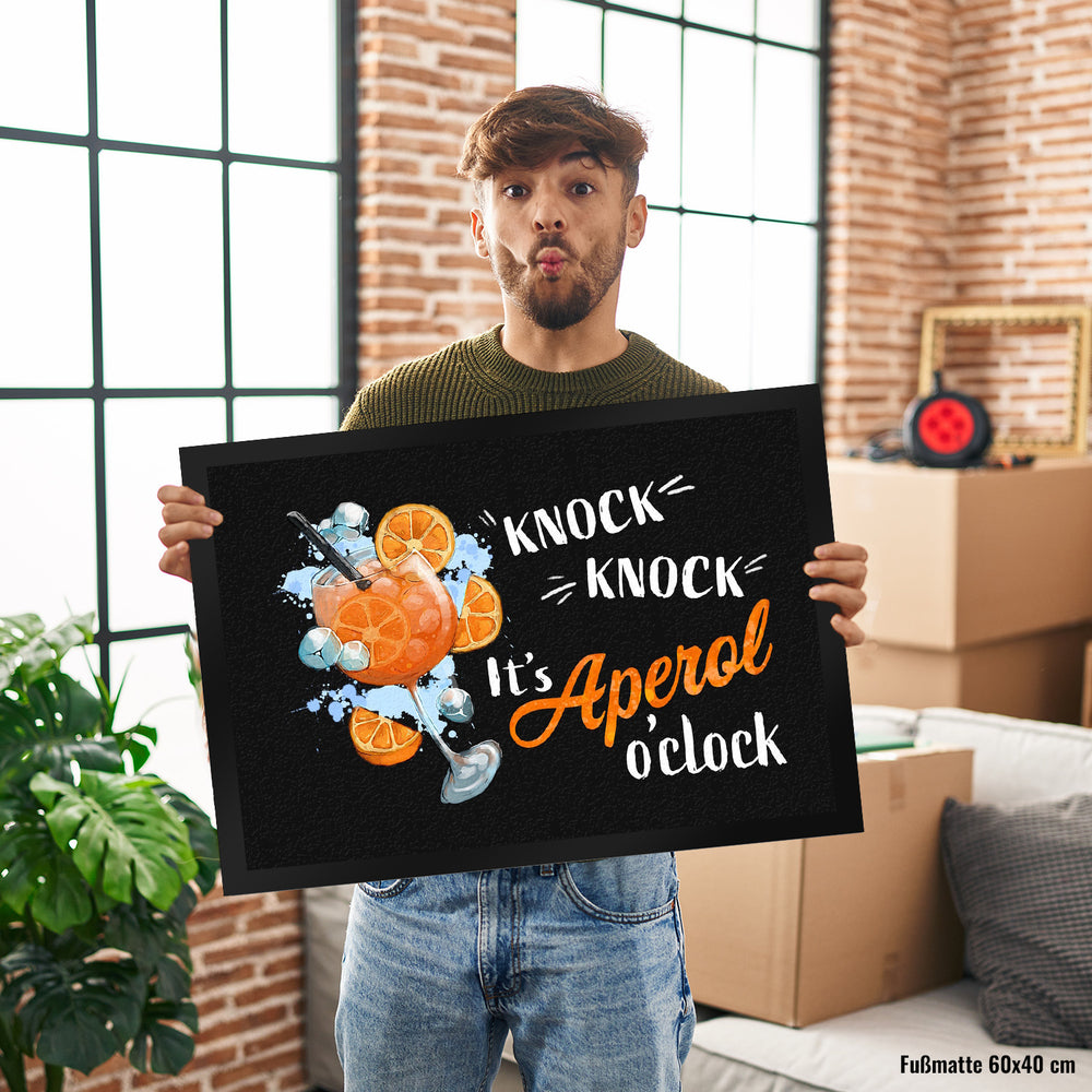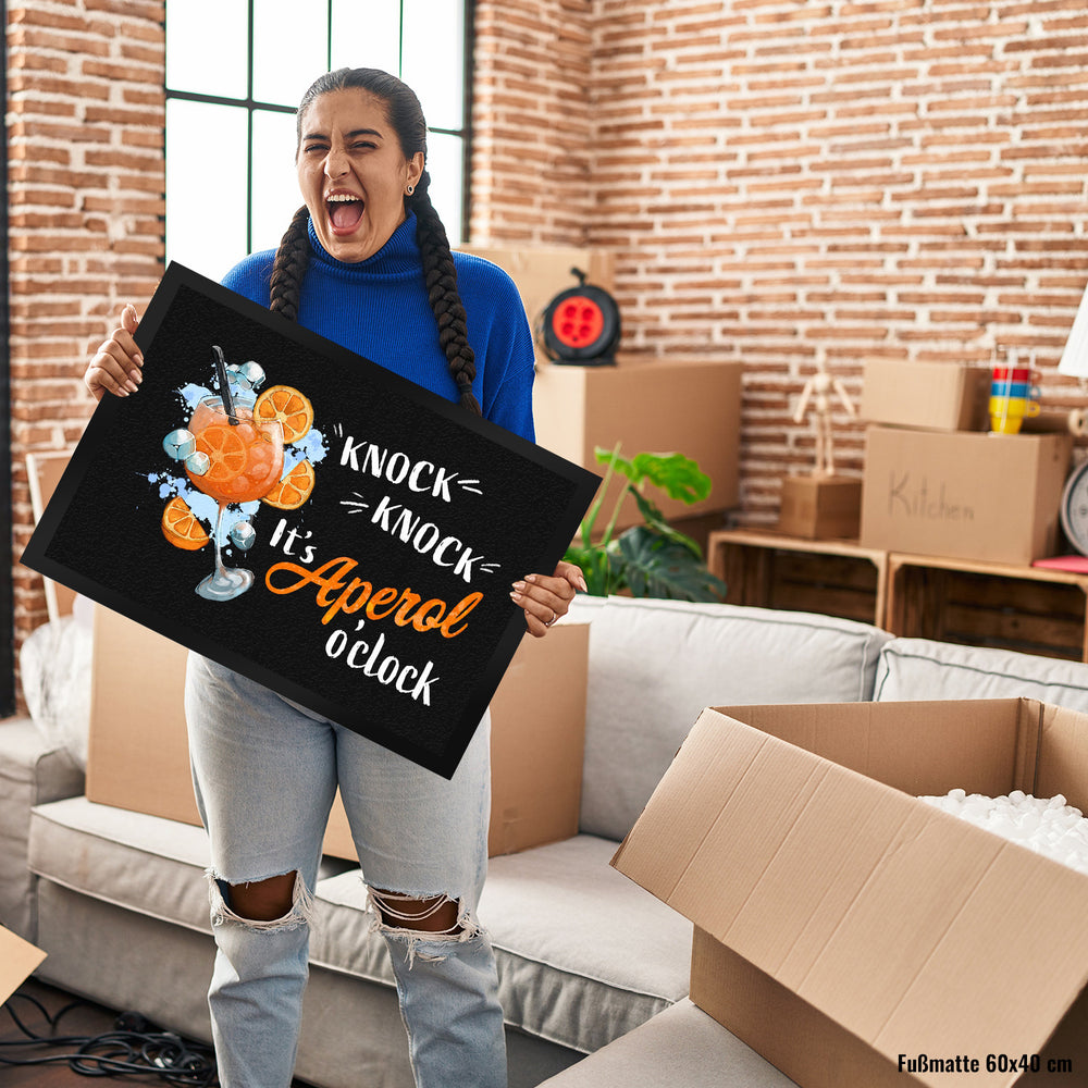 Cocktail Fußmatte in 35x50 cm ohne Rand mit Spruch Knock knock It's Aperol o'clock