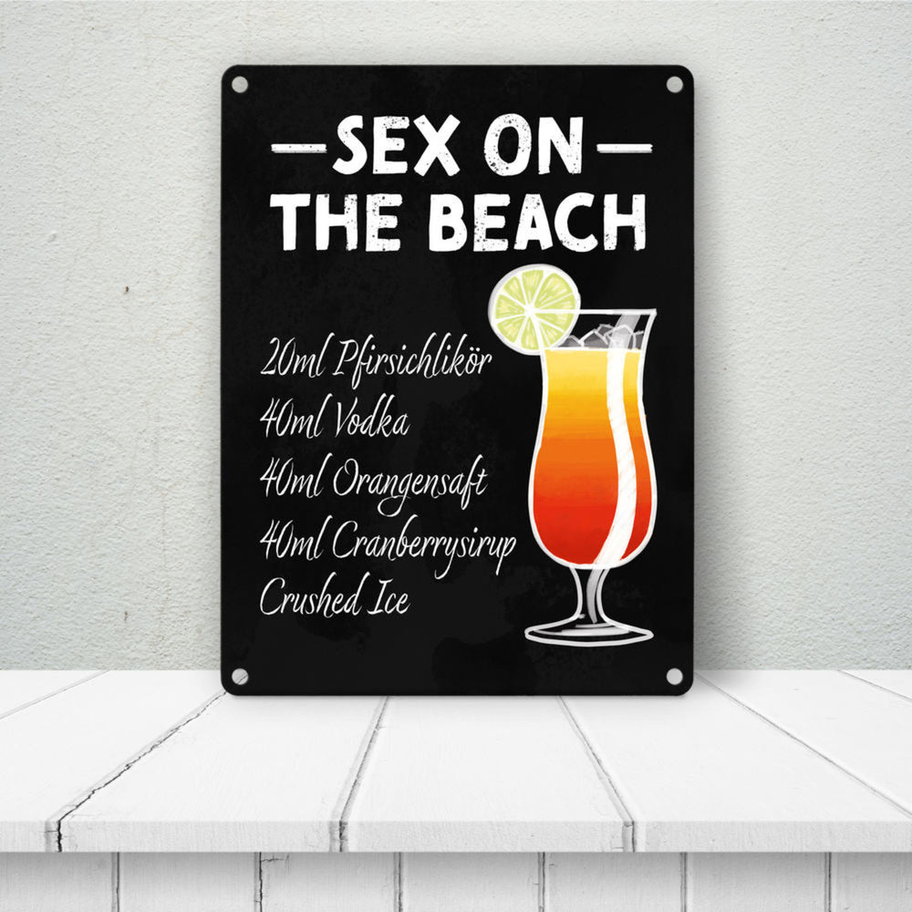 - 1x Metallschild mit Cocktailrezept für Sex on the Beach in der gewählten Größe